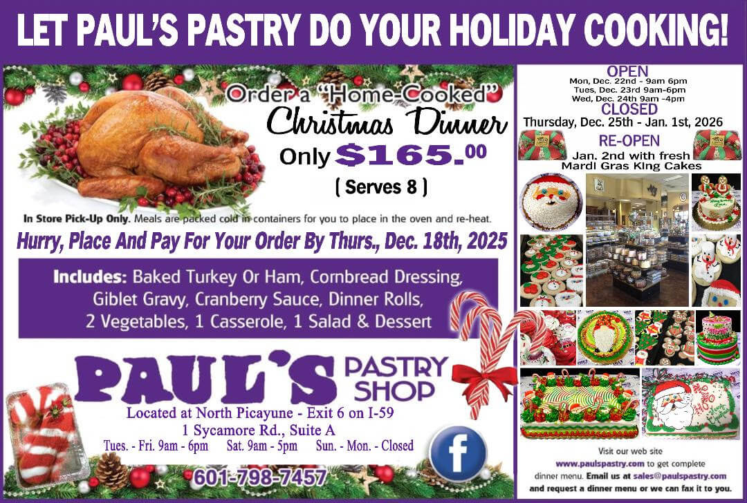 Fax the order form to (601) 798-8945 or email sales@paulspastry.com or call (601) 798-7457.